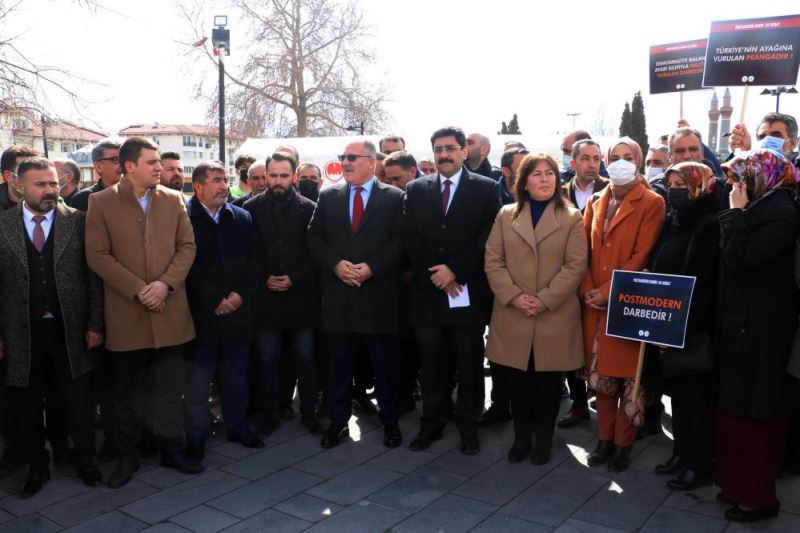 AK Parti Sivas Teşkilatı 28 Şubat Post-modern darbesinin yıl dönümü dolayısı ile kent meydanında bir basın açıklaması düzenledi. Düzenlenen açıklamaya Sivas Belediye Başkanı Hilmi Bilgin, AK Parti Sivas İl Başkanı Hakan Aksu, AK Parti Kadın Kolları Başkanı Arzu Polat, Merkez İlçe Başkanı Muhammed Burak Kuruçay,Memur-Sen Sivas İl Temsilcisi Halil İbrahim Temiz ve partililer katıldı. İl Başkanı Aksu partililer adına yaptığı açıklamada 28 Şubat'ın karanlık zihniyetin ismi olarak tarihe geçtiğini belirtip, "25. yılını geride bırakan ve post-modern darbe olarak adlandırılan 28 Şubat süreci, milletimizin inancına, iradesine, değerlerine, insan haklarına, demokrasiye ve özgürlüklere yapılan fiili bir darbedir. Motivasyonunu 27 Mayıs darbesinden alan 28 Şubat; bir darbenin tarihi olduğu gibi vesayetin, antidemokratikliğin, karanlık bir zihniyetin de ismi olarak tarihe geçmiştir. 28 Şubat'ta sözde 'irtica tehdidi' ile medya, darbeci zihniyete tam olarak 'Topyekûn Savaş' manşetleri atmış, Ankara sokaklarında tanklar yürütülmüş, anti-demokratik MGK kararları alınmış, "demokrasiye balans ayarı" denilerek dönemin hükümeti istifaya zorlanmıştır. ' Bin yıl sürecek' dedikleri 28 Şubat Post-Modern darbesi ile insanlar ayrımcı, ötekileştirişi, insan haklarına aykırı uygulamalara maruz bırakılmış, milyonlarca insanın hayatı karartılmıştır." dedi.