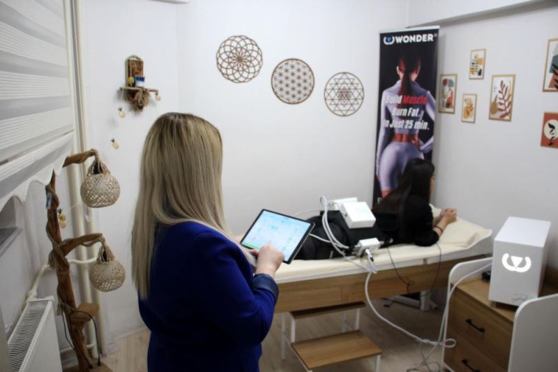 Diyetisyen Betül Öztürk, sistemin yatarken aynı zamanda 52 bin kası çalıştırdığını belirtip, " Bu cihazımız 25 dakikada 3-4 saatlik spora eş değer, aynı zamanda yağ yakımı, kas artırımı, kas belirginleştirme gibi özellikleri bulunmakta. Selülitleri ilk seansta gözle görülür halde azaltabiliyoruz. Bir seansımız 25 dakika sürmekte, 25 dakika sonunda gözle görülür sonuçlar alıyoruz. 52 bin kası çalıştırıyoruz. Bunu bir birey yattığı yerde kesinlikle yapamaz. Bir spor salonunda 4 saat spor yapabilen bir birey yoktur diyebilirim. 52 bin kas çalıştırıyoruz ve bunu derinlemesine çalıştırıyoruz. İstenilen bölgeye yönelik yapıyoruz; göbek, bacak, kalça, iç bacak gibi her gölgeye yönelik çalıştığımız için daha etkili oluyor. Bunu yatarak yapıyoruz, ağrısız acısız bir işlem. Bu cihazı Sivas'a ilk kez getirdik. Çevre illerde bu cihaz bulunmuyor, çevre illerden talep çok fazla, Sivas'ta da talepler çok fazla, çünkü yattığınız yerde 3,5 saatlik spor yapma imkânı sağlıyor" dedi.