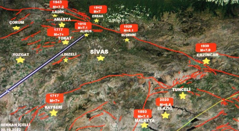 Maden Jeolojisi Yer Bilimleri ve Deprem Uzmanı Serkan, Sivas havzasının deprem açısından tehlikeli bir üçgen arasında olduğunu belirterek, " Sivas havzası tam bir tehdit üçgeni diyebiliriz. Daha önce dolaylı olarak çok depreme maruz kaldık. Bu maruz kalınan depremlerden bir tanesi 1929 Suşehri, depremi. Suşehri'nde 6.1 şiddetinde deprem yaşamıştık. 64 can kaybıyla sonuçlandı. Bunun arkasından 1939 Erzincan'da bir deprem yaşadık. Bu deprem Sivas'ta pek hissedilme se de ilçelerinde 8 bin 32 can kaybımız oldu. Sivas il merkezine yaklaşık 200 kilometrede gerçekleşen 7.9 şiddetinde deprem Sivas'ı etkilediğine göre 23 kilometre ile 200 kilometre arasında ki diğer faylardan da mutlaka biz etkileneceğiz. Sivas İl ve ilçeleri maalesef sıkışmalı tektonik rejim altında. Havzamız çok tehlikeli bir konumda yer alıyor" dedi.