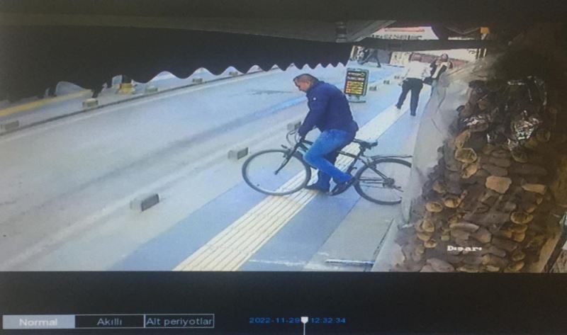 Bisikletini yerinde bulamayan bina görevlisi Yusuf Alpaslan olay yerinde bulunan güvenlik kameralarını kontrol edince gördükleri karşısında şaşkına döndü. Görüntülere hırsızın apartmana girip, bisiklete binmesi ve olay yerinden ayrılması yansıdı.