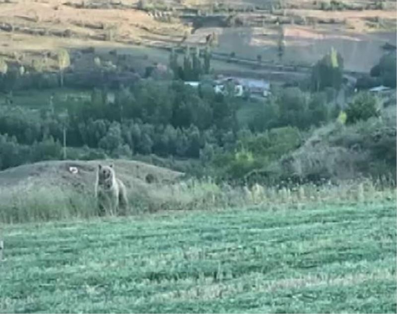 Sivas'ın Zara ilçesi Ahmethacı köyü Taşlıkaya mevkiinde tarlaya inen ayı şaşkınlığa neden oldu. Mustafa Yiğit, tarlasında traktör ile çalışırken biranda ayıyla karşılaştı. Bir süre şaşkınlık yaşayan Yiğit, hemen cep telefonuna sarıldı. Ayıyı cep telefonu kamerası ile kayıt altına aldı. Tarladan uzaklaşmadığını fark eden Yiğit, traktörün kornasını çalarak ayıyı olay yerinden uzaklaştırdı. O anlar cep telefonu kamerasına yansıdı.(İHA)