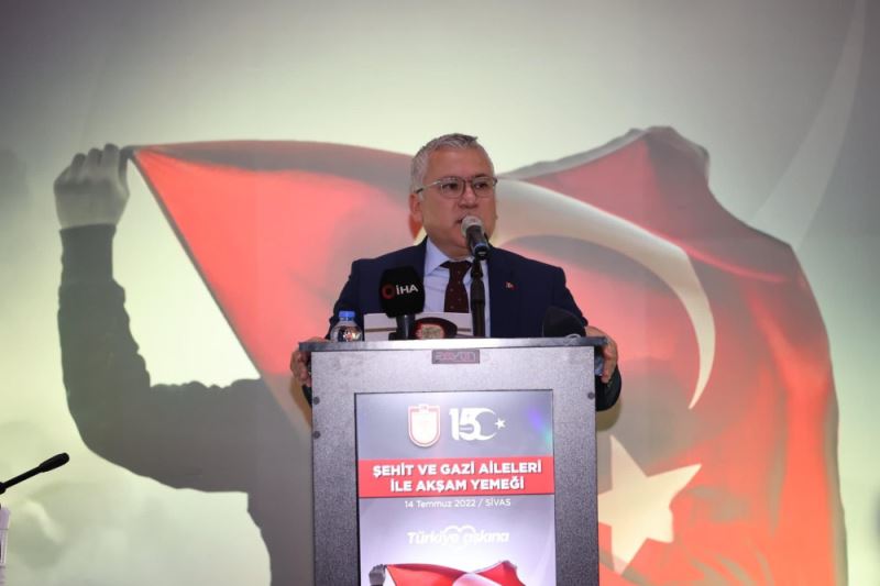 Sivas Valisi Dr. Yılmaz Şimşek ise vatan söz konusu olduğunda aynı safta buluşma erdemi gösteren necip Türk milletinin 15 Temmuz gecesi dik durarak vatanını müdafaa ettiğini, soysuzlara prim vermediğini ve o gece tanklara, uçaklara meydan okuduğunu söyledi.
