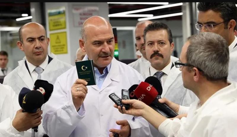 "üçüncü nesil" olarak adlandırılan, holografik şerit, hayalet resim, metamorfik desen gibi özelliklere sahip olan yerli ve milli pasaportun üretimi Nüfus ve Vatandaşlık İşleri Genel Müdürlüğünde İç işleri Bakanı Süleyman Soylu tarafından başlatıldı.