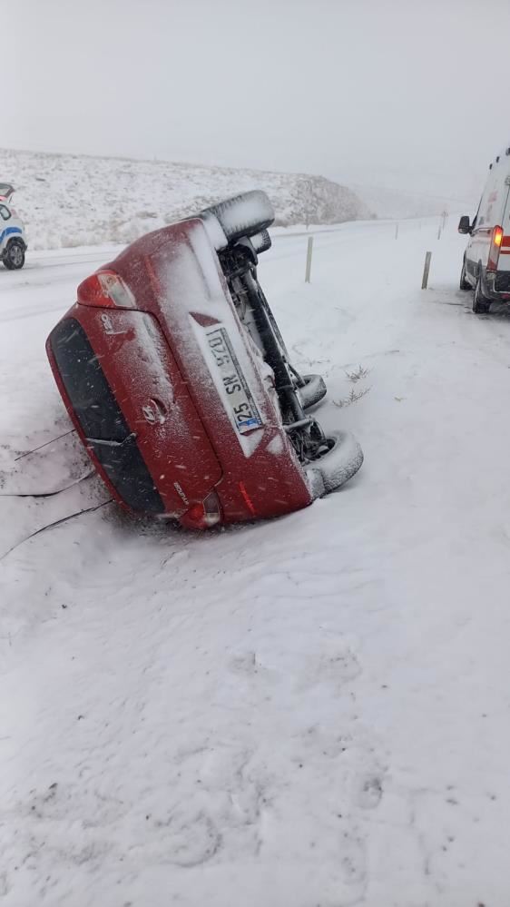 Sivas'ın Gürün ilçesinde kar yağışı nedeniyle kayganlaşan yolda kontrolden çıkan otomobil devrilerek yan yattı, kazada 4 kişi yaralandı.