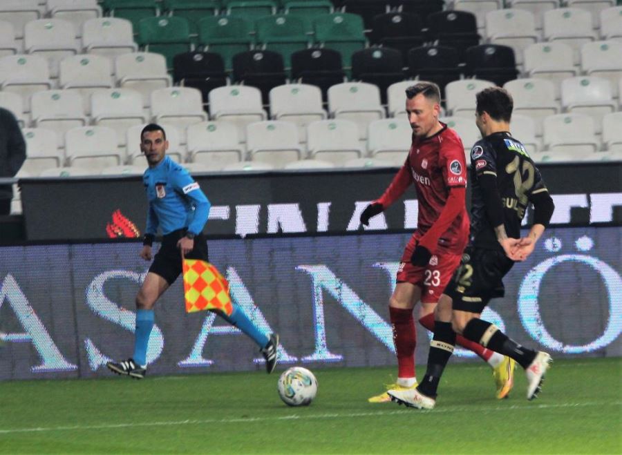 10. dakikada Konyaspor’un sol kanattan kullandığı serbest vuruşta kaleci Ali Şaşal’ın uzaklaştırmak isteği top arka direkte Bruno Paz’ın önünde kaldı. Bu oyuncunun yaptığı vuruşta meşin yuvarlak üstten auta çıktı.
