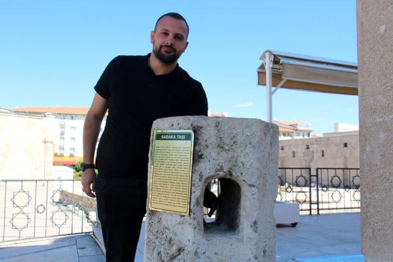 Aydın, sadaka taşı ile veren el ile alan elin birbirini görmediğini ifade edip, “ Kale camiinde bulunan sadaka ve yitik taşı bunu bize çok net bir şekilde gösteriyor. Burada ki amaç şuydu sadaka taşı dediğimiz taşla yatsı namazı zamanı insanlar buraya namazdan önce gelir, durumu iyi olan insanlar yardıma muhtaç kişilere belirli bir sadaka dediğimiz yardımda bulunur. Taşın oyuğunun içerisine sadaka bırakır. Yatsı namazından sonra da karanlıkta ihtiyacı olan insanlar, ihtiyacı kadar olan parayı oradan alırlar. Veren el ve alan birbirini kesinlikle görmüyor. Ayrıca yitik taşı var, dönemin teknolojik gelişmeleri çok ileri düzeyde değil ama insanların birbirine güvenmesi yardımlaşmasından kaynaklı bunlar var” ifadelerini kullandı.