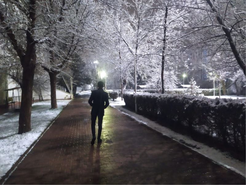 Sivas’ta hava sıcaklığının 20 derece birden düşmesinin ardından Nisan ortasında yağan kar ile şehir beyaza büründü.