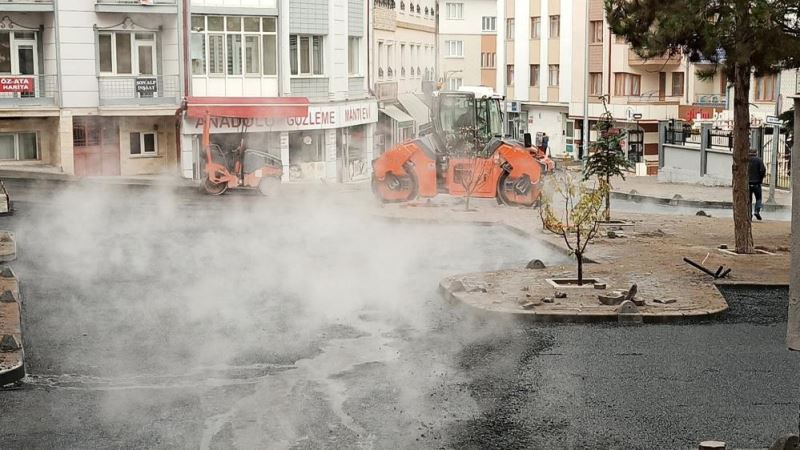 Soğukta dökülen asfalt caddeyi saunaya dönüştürdü