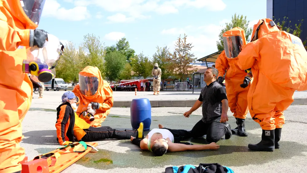 Tatbikat gereği, Hemodiyaliz Ünitesinde meydana gelen elektrik arızası sonucunda yangın çıktı. Gelişmeler üzerine hastanede mor ve kırmızı kod aktive edilerek AFAD, UMKE, İl İtfaiye Müdürlüğü ve İl Sağlık Müdürlüğü ekiplerinden yardım talep edildi. HAP (Hastane Afet ve Acil Durum Planı) Başkanı Prof. Dr. Çağlar Yıldız, HAP organizasyonunda görevli olan yönetim ekibinin toplanarak kriz masası oluşturmasını istedi.