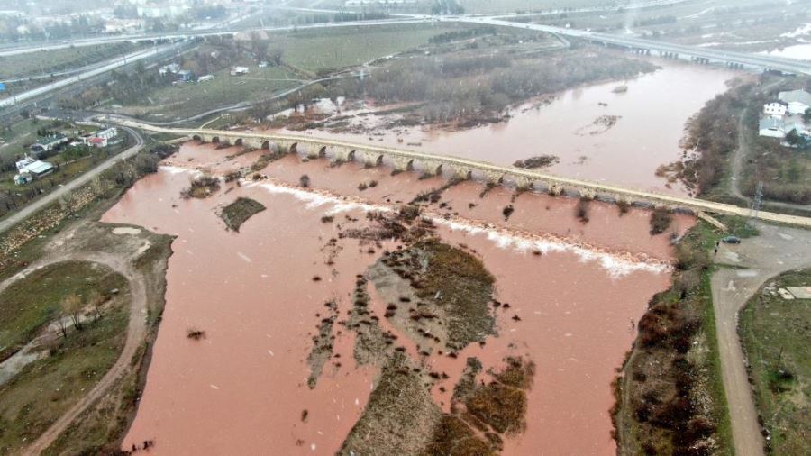 Sivas’ta bulunan, Türkiye’nin en uzun nehri Kızılırmak, yağışlar sonrasında ismini taşıdığı kızıl renge büründü.