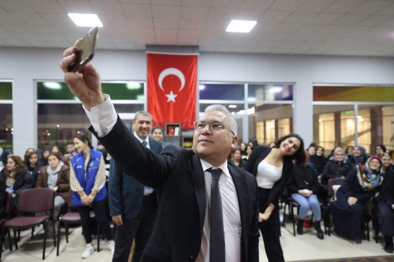 Vali Şimşek, programda öğrencilerin yoğun ilgisi ile karşılaşırken, kendisi ile hatıra fotoğrafı çektirmek isteyenler gençler adeta sıraya girdi. Öğrencilerin hatıra fotografı isteklerini geri çevirmeyen Vali Şimşek, programda selfie çekmeyi ihmal etmedi. (WEB SİTESİ)