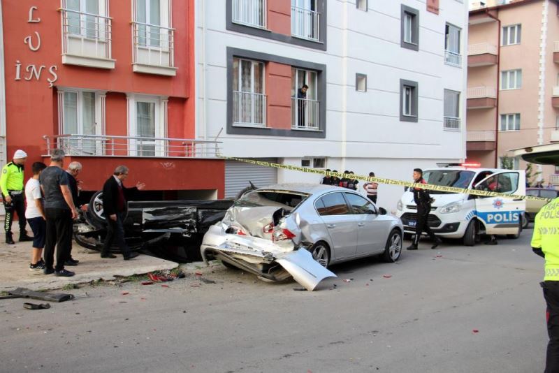 Edinilen bilgilere göre kaza, Fatih Mahallesi 22. Sokak'ta meydana geldi. M.Ç.D. idaresindeki 55 GP 343 plakalı Opel marka otomobil, sürücüsü öğrenilemeyen 06 AS 8280 plakalı BMW marka otomobil ile sokak kesişiminde çarpıştı. Çarpışmanın etkisiyle 06 AS 8280 plakalı otomobilin sürücüsü direksiyon hâkimiyetini kaybederek park halinde bulunan 58 ACT 459 plakalı Volkswagen marka otomobile çarpıp ters döndü. Kaza sonrası ortalık adeta savaş alanına döndü. Durumun bildirilmesi üzerine olay yerine sağlık ve polis ekipleri sevk edildi. Kazada 06 AS 8280 plakalı otomobilin sürücüsünün yaralı bir şekilde halde olay yerinden kaçtığı öğrenildi. Araçlarda maddi hasar meydana geldi, polis kaza ile ilgili inceleme başlattı.(İHA)