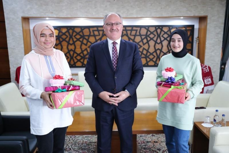 Sivas Belediye Başkanı Hilmi Bilgin, 2022 LGS sınavında Türkiye birincisi olan Ayşe Zümra Aksu ve Reyyan Duman’ı makamında ağırladı. Başarılarından dolayı öğrencileri tebrik eden ve çeşitli hediyeler veren Başkan Bilgin, Milli Eğitim Bakanı Mahmut Özer’i telefonla arayarak öğrencilerle görüştürdü.
