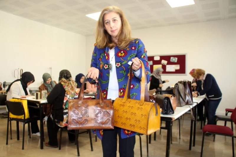 El sanatları öğretmeni Meral Menteşeli, işlemin zorluğuna göre fiyatların değiştiğini ifade etti. Menteşeli, deri işleri yaptıklarını söyleyerek, “Deri kursumuzda çanta, kemer, giyim, kıyafet, tablo ve pano gibi her türlü deri işleri yapıyoruz. Biz ham deriyi alıyoruz. Daha sonra kalıp çıkararak kesiyoruz. Şekillendiriyoruz, boyuyoruz ve dikiyoruz. Derilerimizi bazen şehir dışından, bazen de buradaki malzemecilerimizden alıyoruz. Kursiyer bir çanta için yaklaşık 1 hafta uğraşıyor. Çantamıza kraft yapabiliyoruz, nakış yapabiliyoruz. Oyma ve boyama tekniğimiz var. Isıtarak şekillendirme tekniğimiz var” dedi.