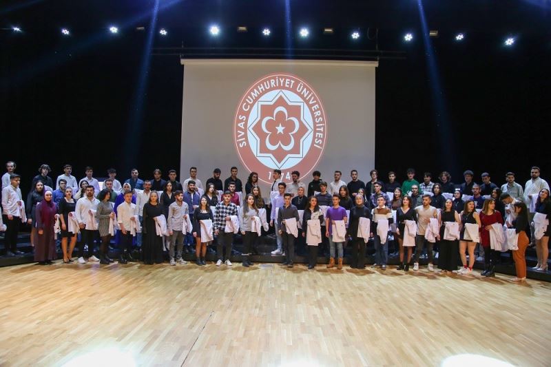 Konuşmaların ardından Sivas Cumhuriyet Üniversitesi (SCÜ) Veteriner Fakültesi 2022-2023 eğitim- öğretim dönemi 1. Sınıf öğrencilerine meslek önlükleri giydirildi.(İHA)