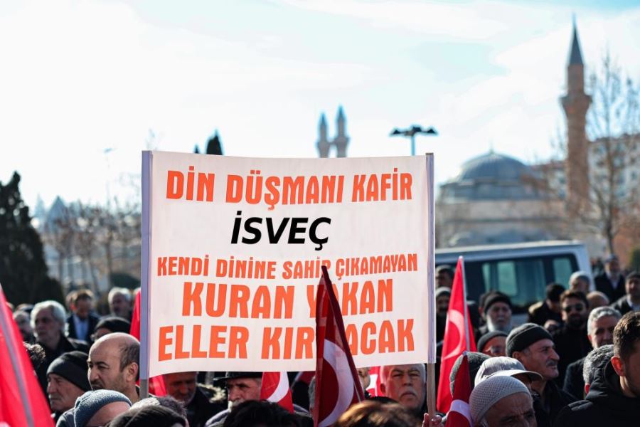 Sivas Cumhuriyet Meydanın da düzenlenen basına açıklamasına AK Parti Sivas Milletvekili Semiha Ekinci, Belediye Başkanı Hilmi Bilgin ve AK Parti İl Başkanı Hakan Aksu’da katıldı. Kuran- Kerim’in okunmasının ve duaların edilmesinin ardından ellerinde Türk Bayrağı ve “Din düşmanı Kafir İsveç kendi dinine sahip çıkamayan Kuran yakan eller kırılacak” yazılı pankart bulunan vatandaşlar İsveç aleyhinde slogan attı.