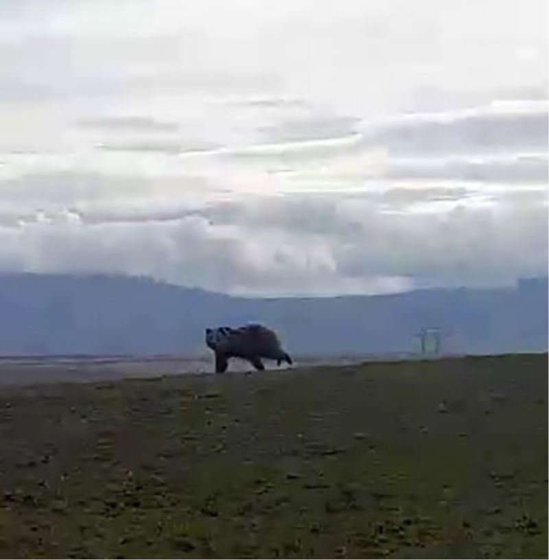 Sivas’ın Ulaş İlçesi Yenikarahisar köyü yakınlarında arabayla seyir halinde olan iki vatandaş dev bir boz ayıyla karşılaştı. Görüntülerde aracı fark eden boz ayı panikleyerek aniden koşmaya başladı. Hızla koşan boz ayı yol kenarında ki tellerin arasından geçerek dağlık alana doğru kaçtı. Görüntülenen boz ayı iri cüssesiyle dikkat çekti. Görüntüyü kayda alan Ümit Usta, sürüsünü ziyaret etmeye gittiği sırada ayıyla karşılaştığını belirterek, “Tecer dağından gelmiş olan dev bir ayıyı gördük. Karahisar köyünde ki sürümüzde ki köpekleri görmeye giderken arabanın içinden gördüğümüz ayının videosunu çektik” dedi.(İHA)