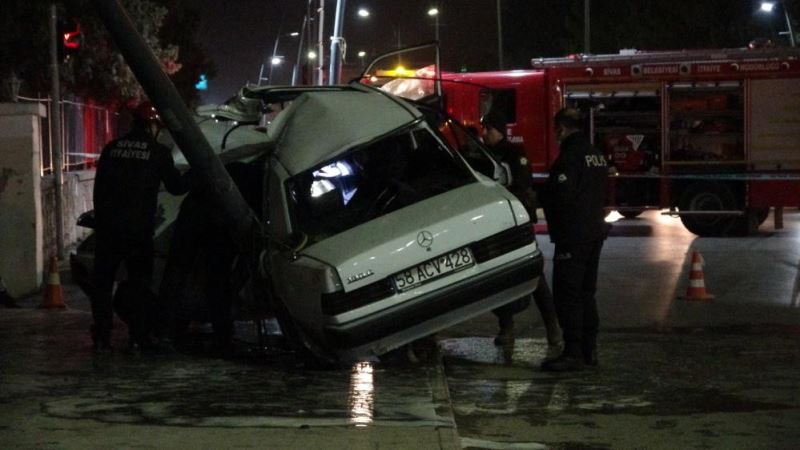 Sivas’ta direğe çarpan otomobil hurdaya döndü, 3 kişi yaralandı