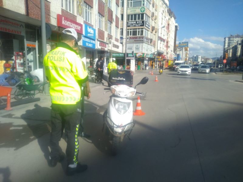 Ehliyetten sürücünün kaskına kadar denetleme yapan trafik ekipleri, ehliyetsiz, ruhsatsız, plakasız kasksız ve şasi numarası olmayan motosikletleri trafikten men ediyor.