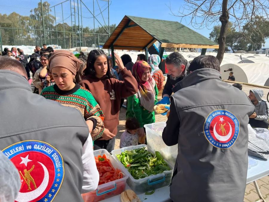 Bu kapsamda Şehit aileleri, gaziler, Plastay Kimya Yönetim Kurulu Başkanı Mustafa Sinan Sungur, Chocofly Cafe ve Hanımeli Börek Baklavanın sahibi Kemal Doğan, Salihoğulları A.Ş, Netbor Plastik Boru A.Ş, Tiffany Mobilya, Erdaloğulları Sebzecilik, Gaydaş Yeşillik ve bazı işletmelerin katkılarıyla hazırlanan 500 kilogram Sivas Köftesi, Hatay’da enkaza dönen evlerinden ayrılmak zorunda kalıp çadır kentlerde yaşayan depremzedelere ikram edildi.