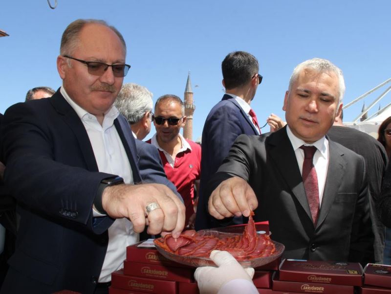 Sivas Ticaret ve Sanayi Odası Başkanı Mustafa Eken ise yaptığı konuşmasında, Sivas’ın hak ettiği yere geldiğini söyleyerek, “Buradan tüm dünyaya seslenmek istiyorum: Kayseri pastırması da çok güzel ama Sivas pastırması etinden, sütünden, yerinden, yeminden, havasından tam imal edilen yer Sivas. Artık inşallah bugünkü bu tanıtımla birlikte yurt dışından, yurt içinden gelen yatırımcımız, sıla-ı rahim için gelen hemşerilerimiz fark etmez hepsinden pastırmamızın tadına bakacaklar İnşallah. Bir taraftan Ticaret Odası, bir taraftan Ticaret ve Sanayi Odamız, bütün STK’larımız hep birlikte ürünlerimize, ürettiklerimize markalarımıza sahip çıkarsak Sivas hak ettiği yere gelecek” ifadelerini kullandı.